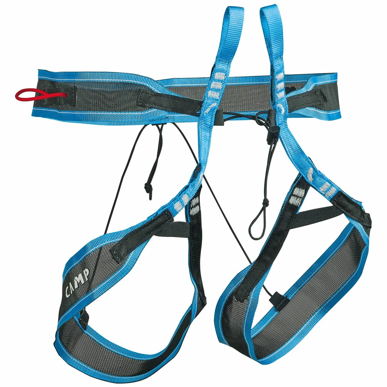 An elastic cord on the waist belt is adjustable with a durable Hypalon® clip. The elastic rise adjustment cord for the leg loops is secured by a knot to prevent the leg loops from creeping down during dynamic movements. A single gear loop is removable using Hypalon® slots.