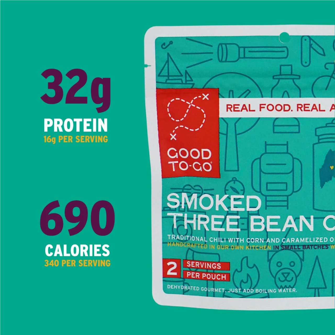 The Smoked Three Bean Chili from Good To-Go features the flavors of sweet tomatoes, nutty beans and gentle smokiness. The chili is slow cooked with fresh carrots, onions, garlic and corn. The melding of the spices and vegetables over time is what creates its complex flavors.