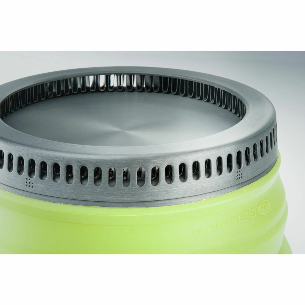 For the longest time, the choice between silicone and metal pots was a choice between space and speed, between efficient packing and fuel efficiency, but with the Escape HS line, collapsible pots finally grow up. The Escape starts from a collapsible design which saves 53% or more space in your backpack and adds a lightweight, crushproof, strainer lid with silicone thumbpads, dual bail handles which lock the lid in place, molded-in graduations and just the right amount of spare space to nest other Escape tableware items inside. But the real breakthrough which lifts the Escape HS Pots above the pack come from the bottom up, where the hard anodized base is built around an incredible, hyper-conducting heatsink which cooks 30% faster and saves 30% more fuel for even more space savings in your pack.