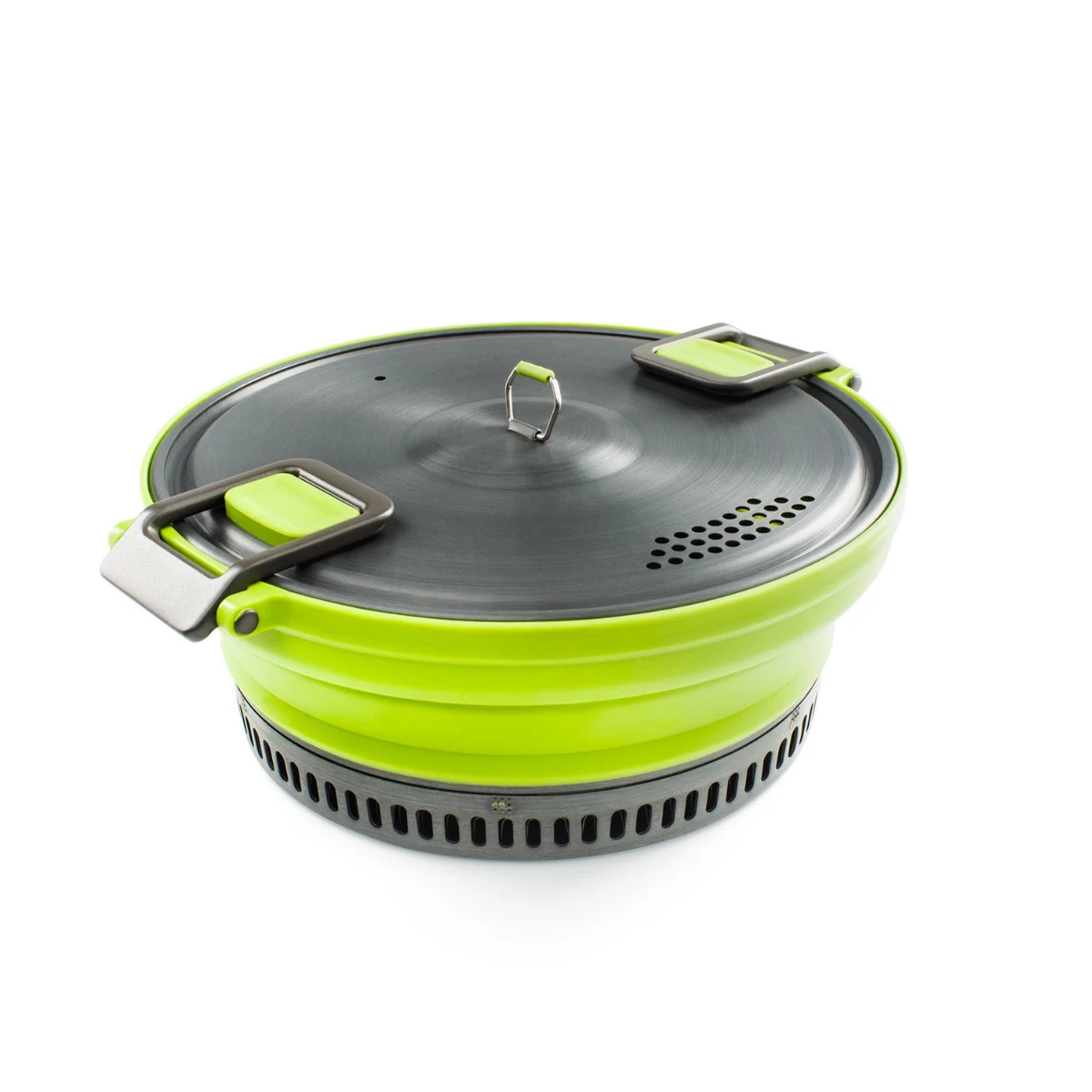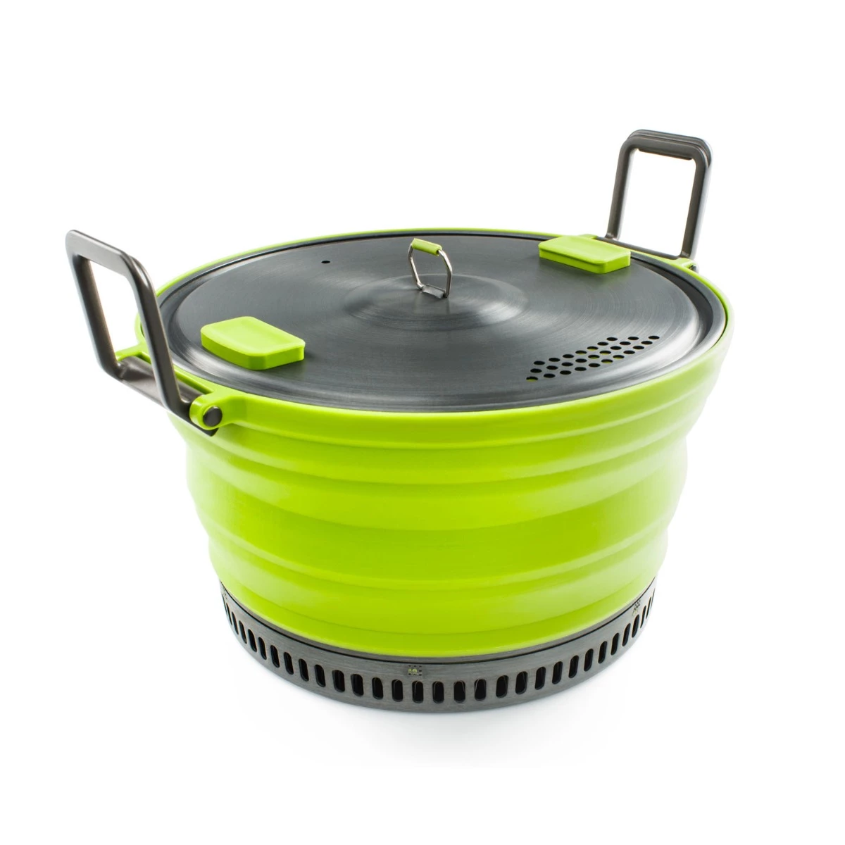 Includes 3 L Collapsible Pot, Folding Handles, Strainer Lid