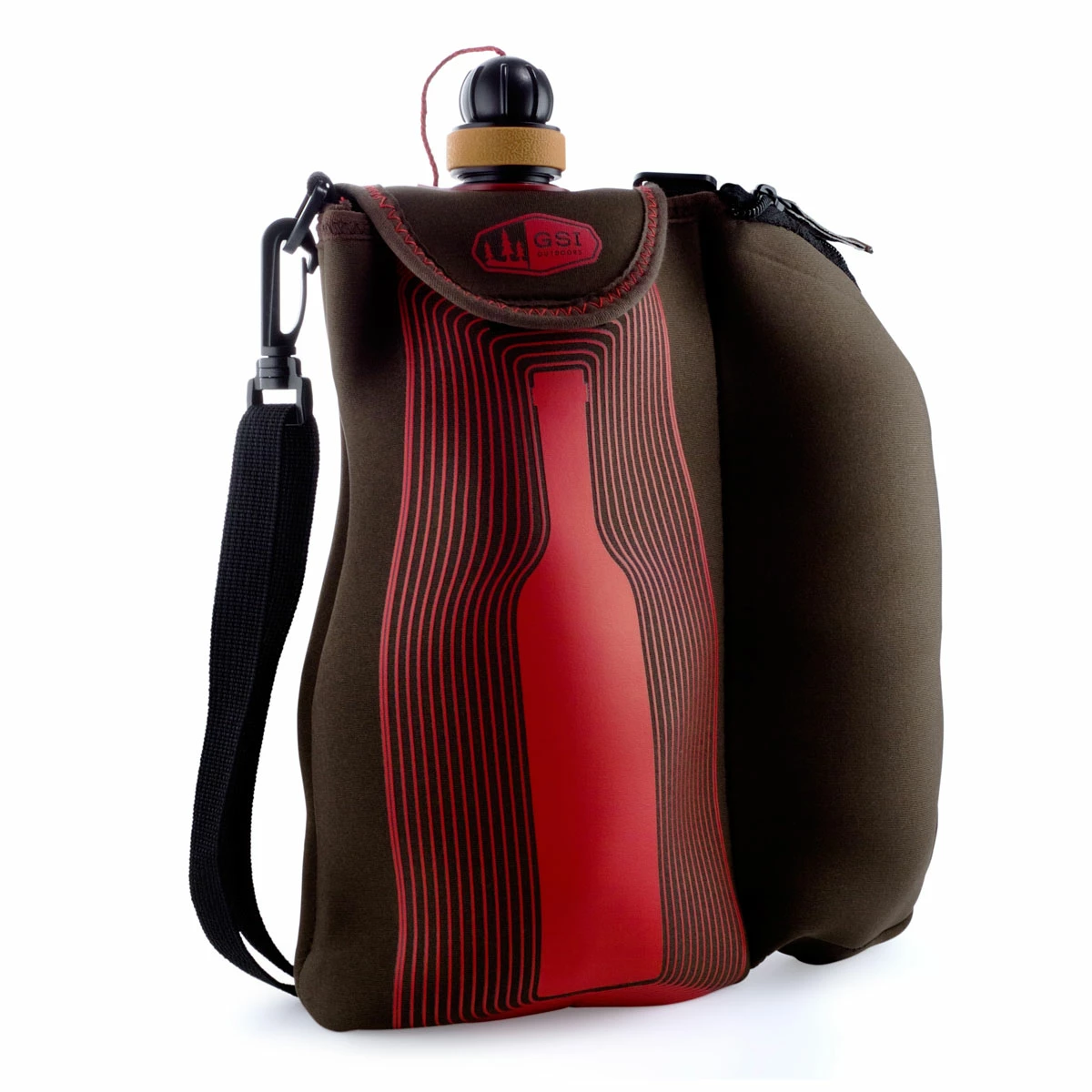 • Includes 750 ml Soft Sided Wine Reservoir, Insulating Neoprene Tote, 2 Nesting Wine Glasses