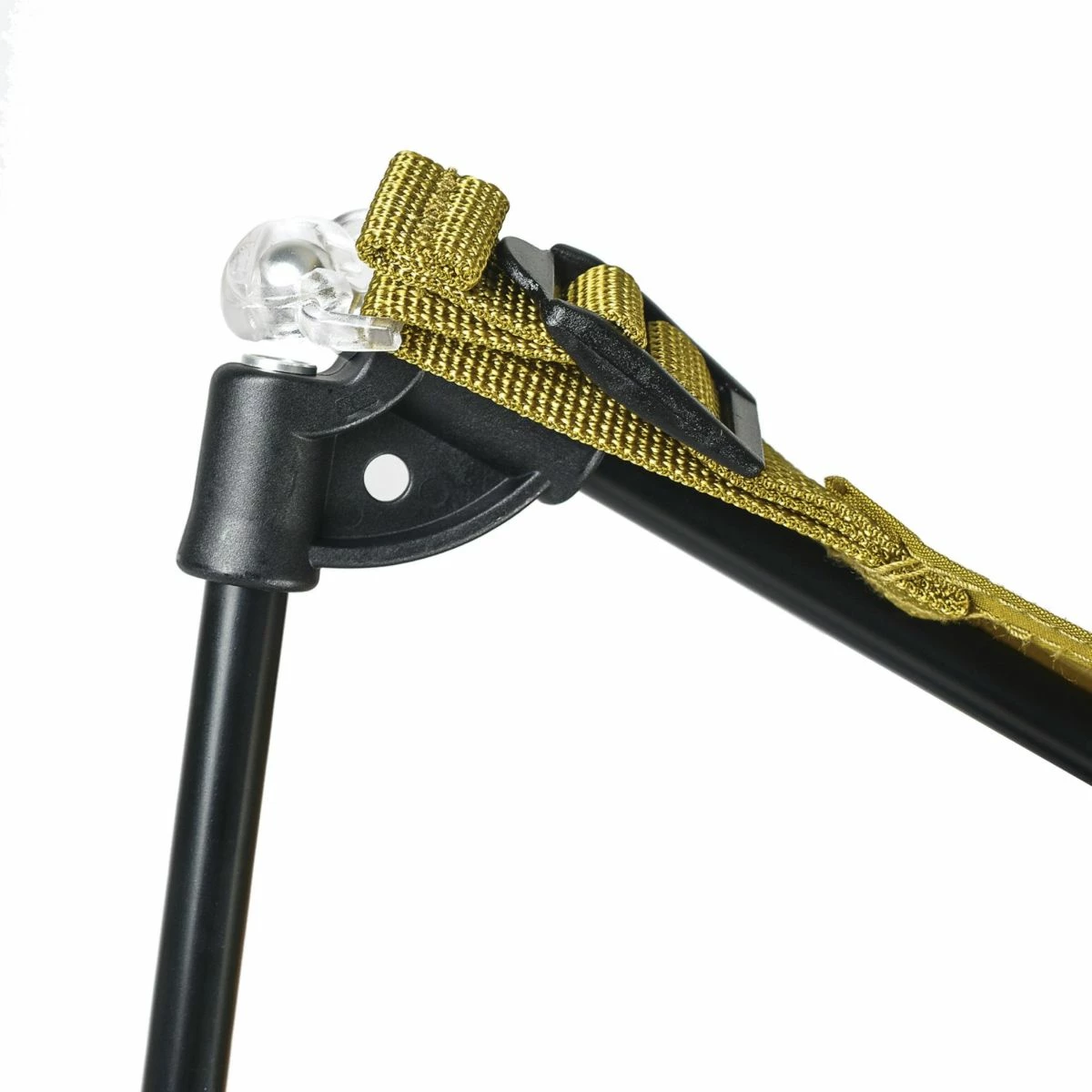 A simple clip and ladder-lock system makes deploying and tensioning Personal Shade simple. Simply attach the clip, then pull the nylon webbing strap. The ladder lock will hold it place, keeping your shade taught, even on windy days. Release is simple – just lift the tab on the ladder lock to release tension, unhook the clip, and pack up.