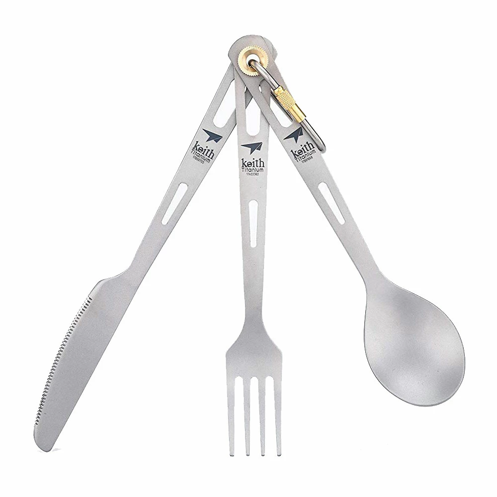 The 3-Piece Titanium Cutlery Set from Keith features a lightweight spoon, fork, and knife for any minimalist backpacker who cooks or eats