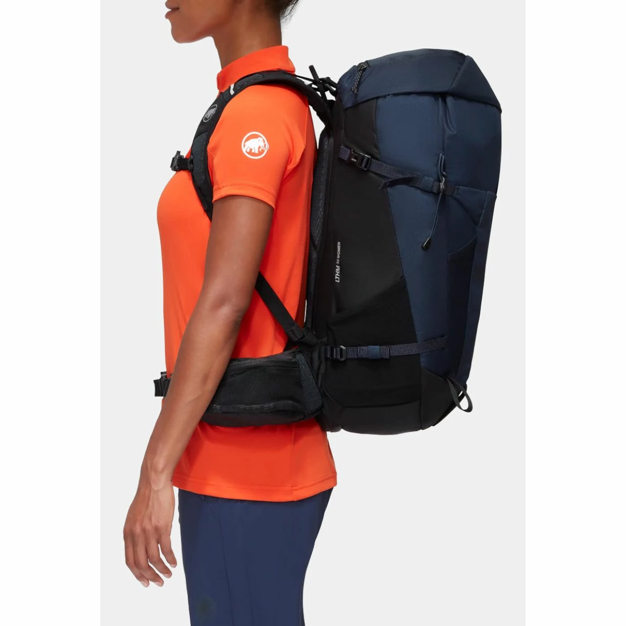 You feel equally at home on relaxed hikes or demanding tours. So does the Mammut Lithium 30 Women. It is made mainly from recycled materials and the durable water-repellent treatment is PFC-free.