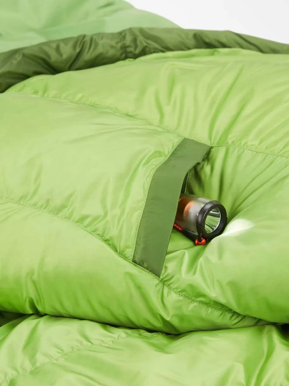 - Anti-snag slider on main zipper and fold-down second zipper provide added ventilation and easy access in and out of sleeping bag