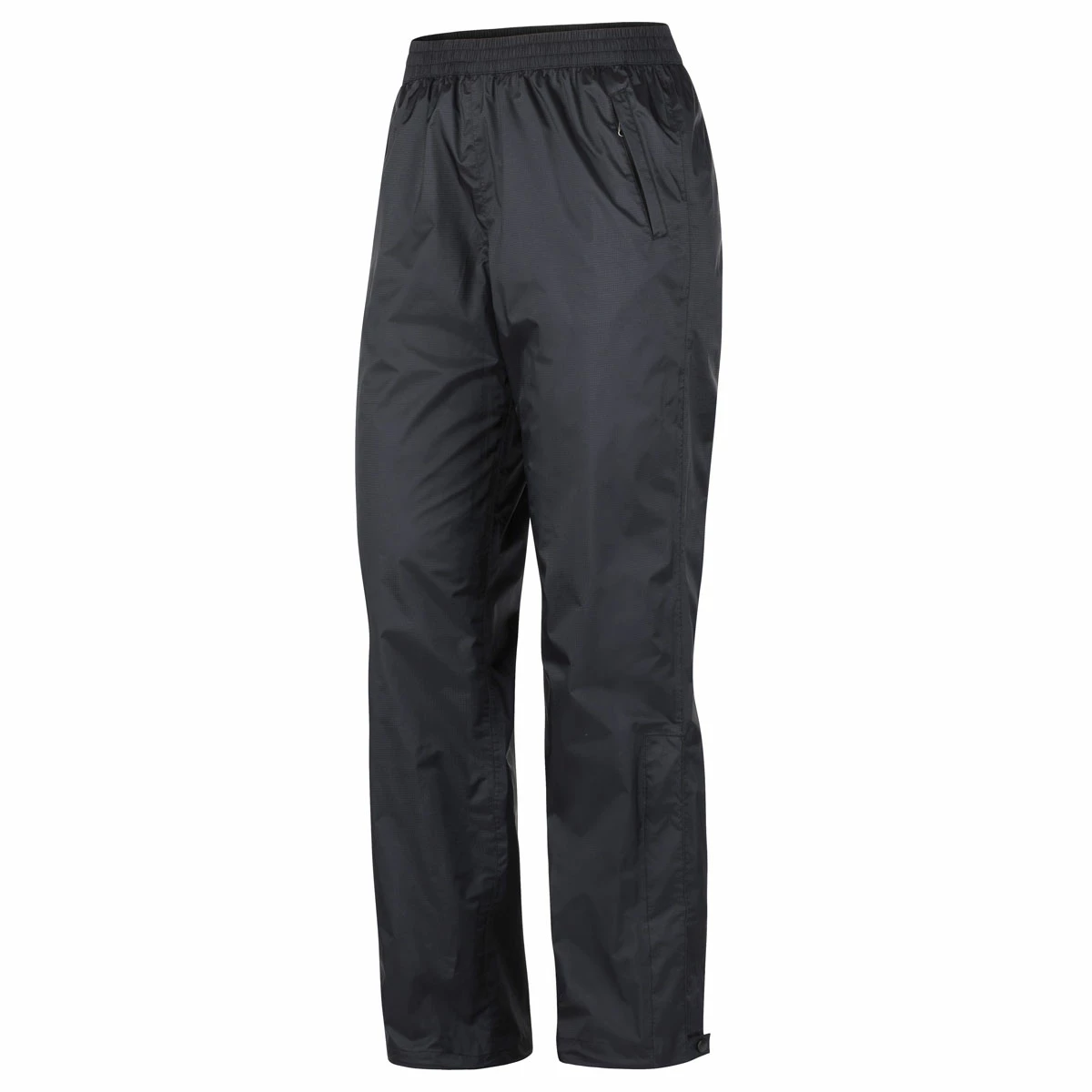 Now made with 100% recycled shell fabric, the Marmot PreCip Eco rain pant sets the standard for lightweight backpacking, hiking and mountain travel rainwear that is eminently affordable. This pant is full of Marmot features, very light and packable, and a great value. Articulated seat/knees, elastic drawcord waist, elastic leg cuffs with ankle side zippers, zippered hand pockets, gusseted crotch, and fully taped seams.