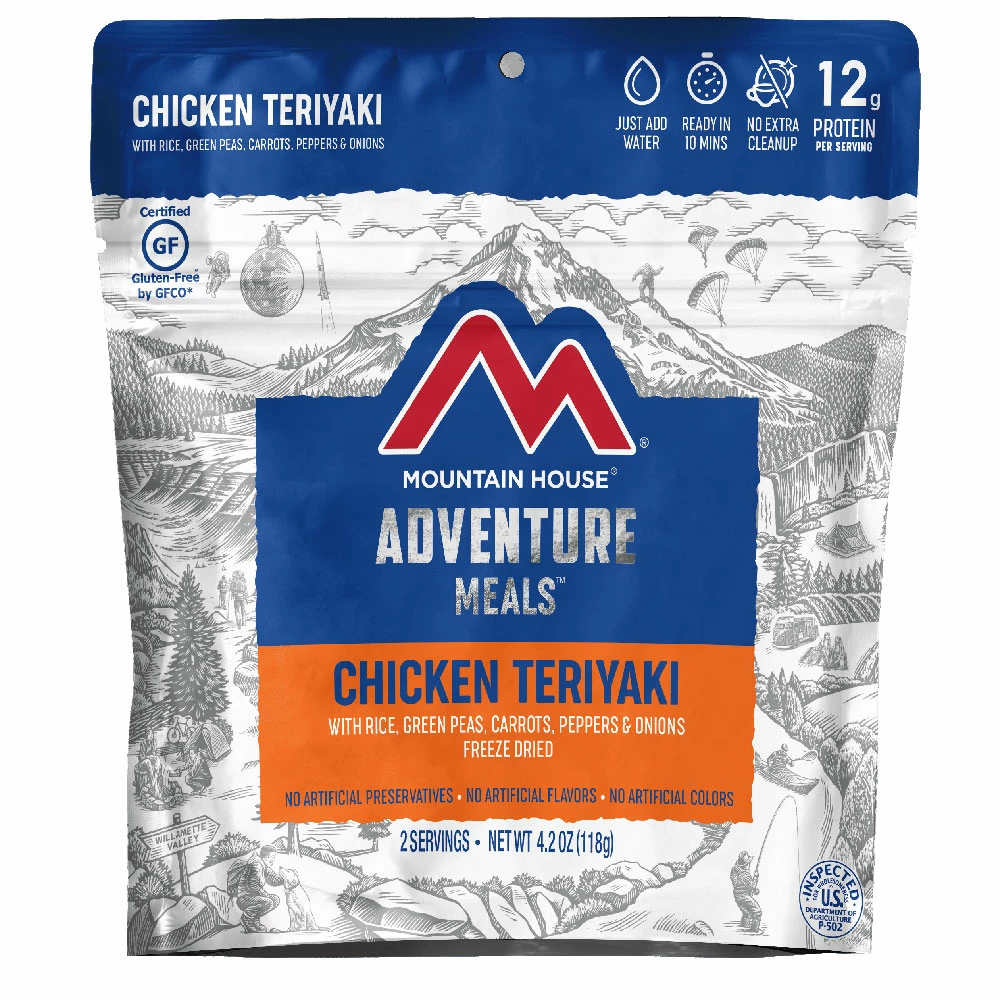 Mountain House Chicken Teriyaki with Rice: this best-selling favorite features chicken, rice, and savory veggies with just a hint of sake. No artificial flavors, preservatives, or colors.