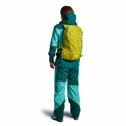 In order to optimally adjust the backpack while on the go, it can be quickly compressed using the integrated side straps and folded into a flat-fitting second skin on the back. When it comes to rappelling into steep gullies or short walking passages, this freeriding backpack has all the necessary attachment options for skis, an ice axe or rope, not to mention the tried-and-tested helmet net, emergency card and hydration system compatibility. All the features are well stowed away on the outside to prevent them catching, even in difficult terrain.