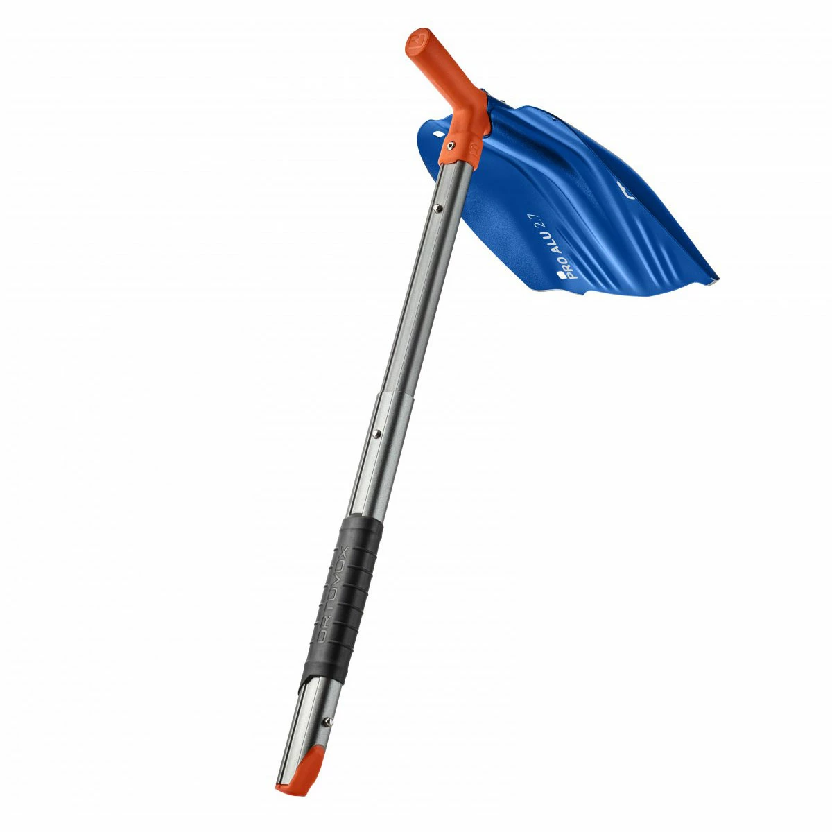 In this latest iteration of the classic Pro Alu Shovel, Ortovox used the most innovative materials available and cutting edge production methods to achieve the best weight-to-rigidity ratio possible. Stabilization ribs and high sidewalls on the Pro Alu III give the anodized blade rigidity, while the integrated shaft socket makes it easy to pack. With the new quick-lock, the blade and the fluted telescoping shaft can be put together in one motion. The new T-Grip Pro is revolutionary. It can be inserted for both right and left-handers – and also facilitates economical clearing. One hand grasps the long grip side, which serves as an ergonomic lever, while the other hand has maximum hold on the shaft’s rubber-coated grip zone.