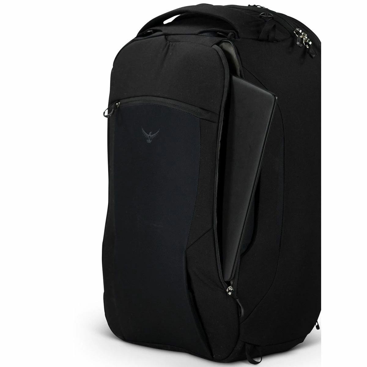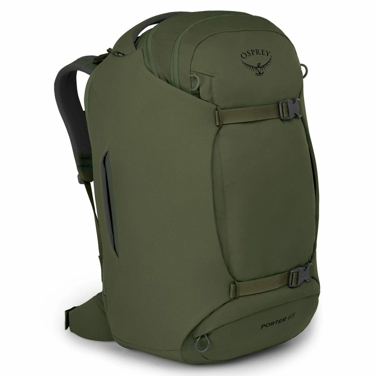 Ideal for lengthier travel excursions and adventures of all kinds, the Osprey Porter 65 offers a large storage capacity and convenient organization with on-the-go access. Whether you’re traveling by plane, train or automobile, padded sidewalls provide protection. StraightJacket straps compress your load to a smaller size and a stowaway harness and hipbelt deploy for backpack-style carry. Recycled fabrics, bluesign®-approved materials and PFC-free DWR uphold Osprey’s commitment to sustainability without compromising quality construction, design and durability. WARNING for California customers: This product can expose you to chemicals including dimethylformamide, which is known to the State of California to cause cancer. For more information, go to oehha.ca.gov/proposition-65/about-proposition-65