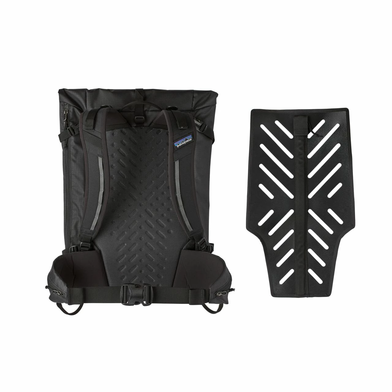 - Dynamic strap system carries skis and snowboards in an A-frame, vertical or cross position, but is removable to save weight
