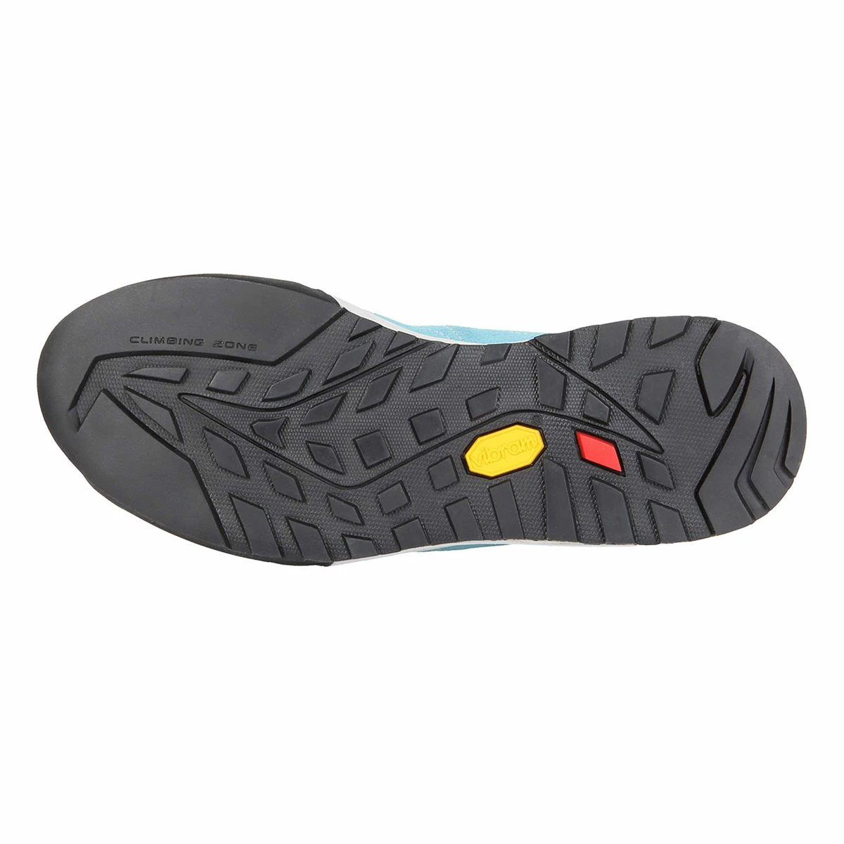 Vibram rubber and to-the-toe lacing give the Scarpa women’s Gecko the precision for fifth-class moves and inspire confidence when you’re cruising an exposed approach. Knowing that the descent is sometimes the crux, micro-lugs on the sole bite the trail when descending or negotiating dirty sections. The Italian suede upper reduces break-in time, without sacrificing the longevity of the shoe. The rubber toe rand wraps over the midsole, improving performance and durability. European quality, climbing shoe performance, SCARPA soul.