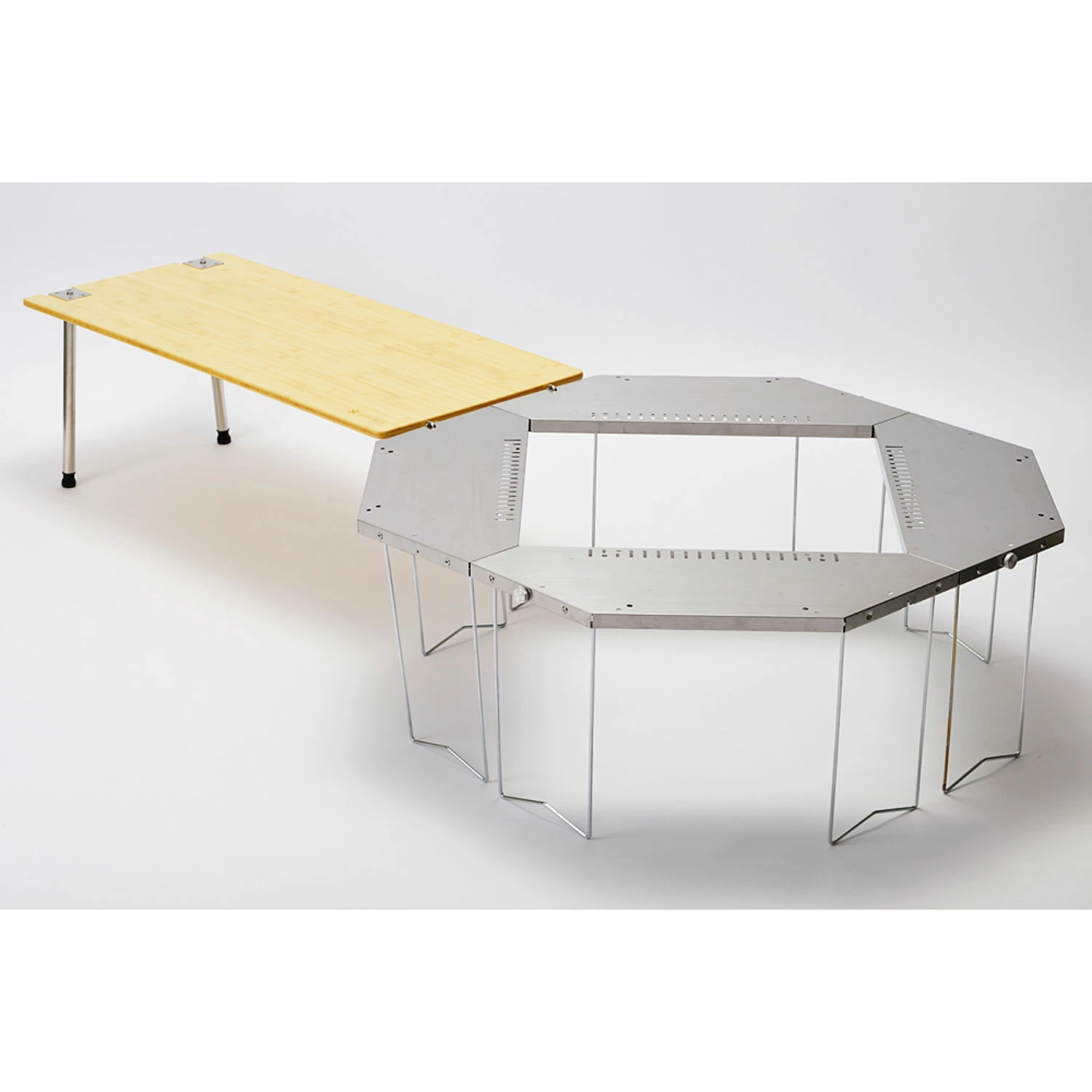 Just when we think Snow Peak’s Iron Grill Table system can’t get any more versatile, they introduce the Jikaro Firering Table, which turns your Snow Peak Pack & Carry fireplace into a dining table. Providing a sturdy surface to cook and eat from, the Jikaro can be configured into a square or octagonal table to accommodate groups large and small. Works with the Iron Grill table system, Takibi Fire & Grill, and the Pack & Carry Fireplace (all sold separately).