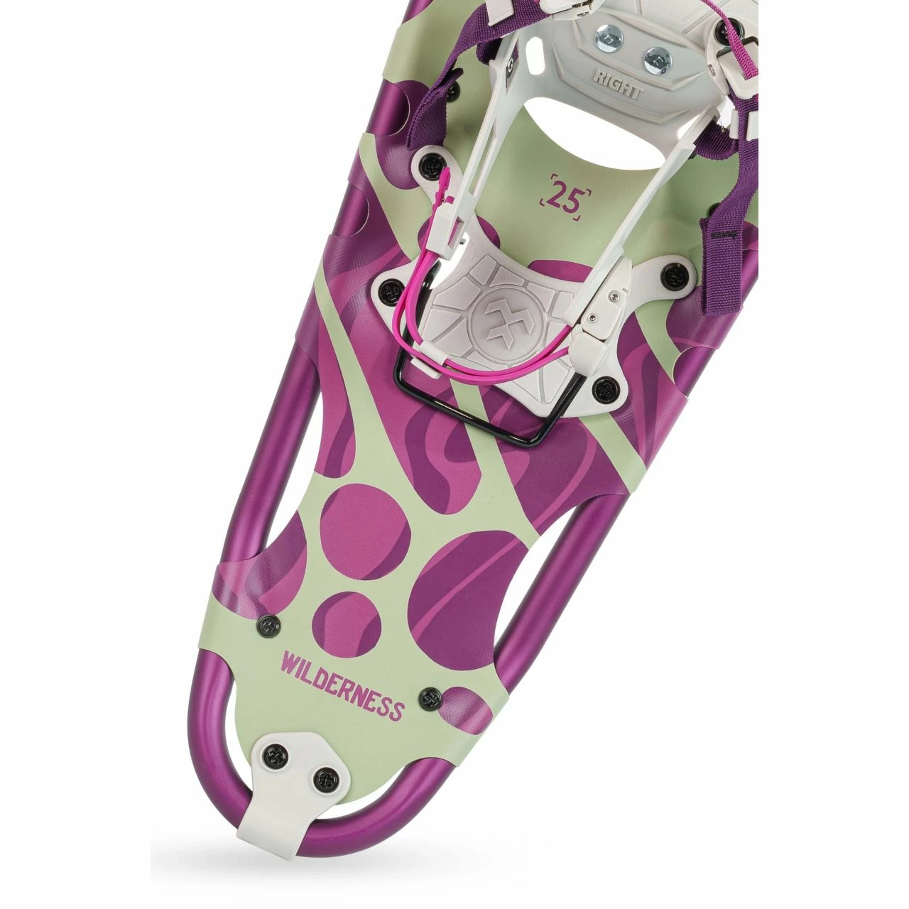 A well-balanced day hiking snowshoe, the Tubbs women’s Wilderness is the perfect blend of functional technology and comfort. The Fit-Stepâ„¢ 2.0 frame with SoftTecâ„¢ decking provide ample flotation when the snow gets deep, while the tried-and-true Cobraâ„¢ toe crampon and Tubbs heel crampon bring the traction and stability needed on varying terrain.